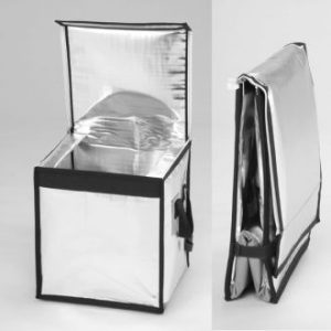 ・蓄冷剤やドライアイスを投入できるよう、天面の内側に冷媒ネットを縫着